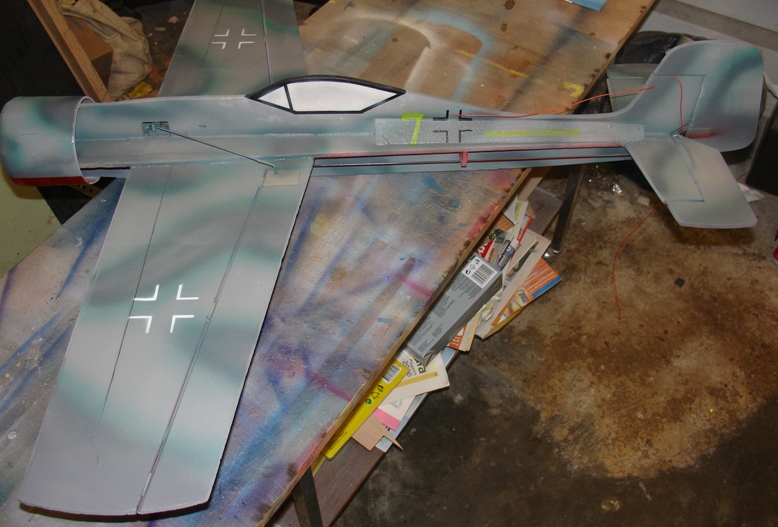 Hier die Unterseite. Farbgestaltung nach den Maschinen der "Galland-Schutzstaffel" des JG 44. Entsprechende Vorlagen sind im Internet reichlich zu finden. |