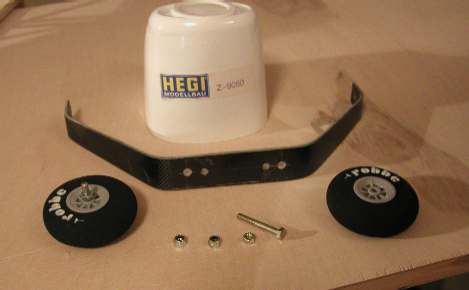 Hier das Zubehör zum Komplettieren des Modells: Das CFK-Fahrwerk stammt von Modellbau Bichler - Preis rund 15