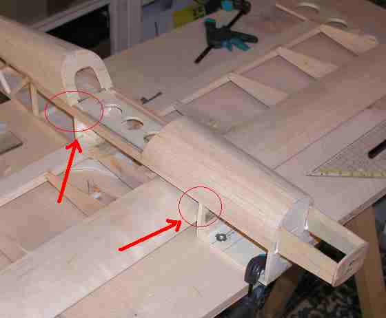Der Rumpf hat zwei Schwachstellen - hier rot markiert. Um diese