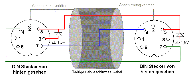 kommen. Die Abschirmung muß mit den Metallschalen des DIN-Steckers