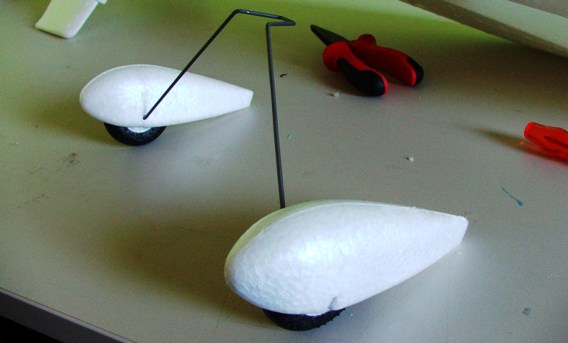 Nun den Fahrwerksdraht herausziehen, die Räder einlegen und