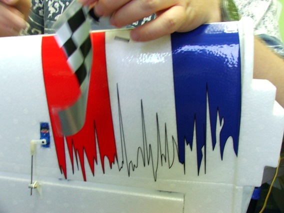 Hier zeige ich beispielhaft das Aufbringen des Dekorbogens an der Tragfläche