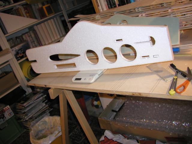 Je nach Material hat der Rumpf ein Gewicht von ca. 45g bei Styropor